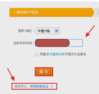 第三步:填写您的个人手机号码以便进行信息验证,您也可以使用邮箱进行验证