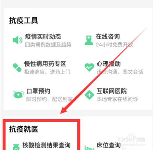 登录成功,点击“抗疫就医”下方“核酸检测结果查询”就可以查询结果了。