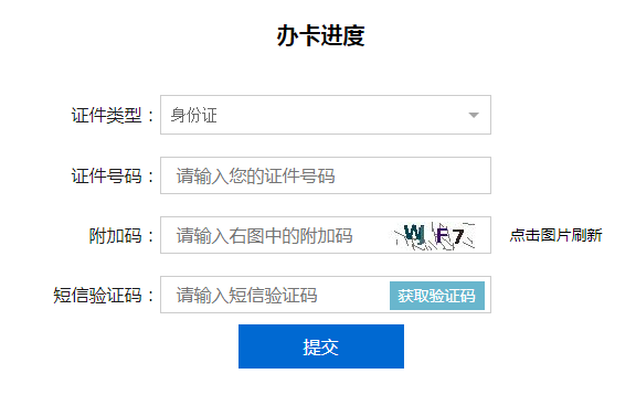登陆民生银行信用卡中心,点击【业务办理】-【我的账户】-【办卡进度】,进入信用卡申请进度查询页面,输入证件号码、手机号码,并填写短信验证码,即可查询到信用卡申请进度的结果。