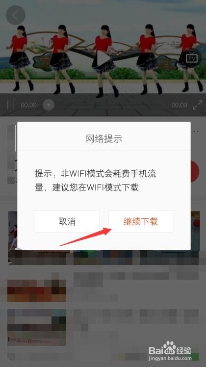 手机流量下载会弹出网络提示,数据流量足够点击继续下载,如果为wifi连接就不会有该提示。