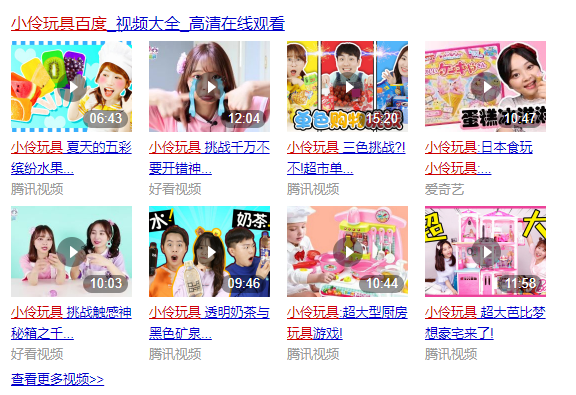 小伶玩具制作了少儿短视频发布在腾讯视频、爱奇艺、优酷、今日头条、秒拍、美拍等视频网站播放。