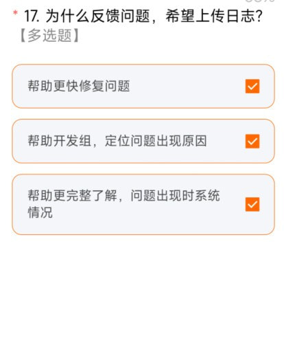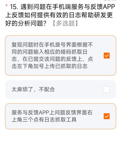 15、遇到问题在手机端服务与反馈APP上反馈如何提供有效的日志帮助研发更好的分析问题?【多选题】