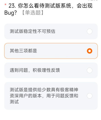 23、你怎么看待测试版系统,会出现Bug?【单选题】