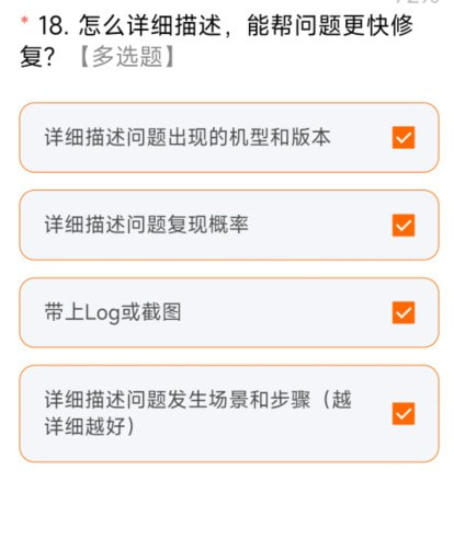 18、怎么详细描述,能帮问题更快修复?【多选题】