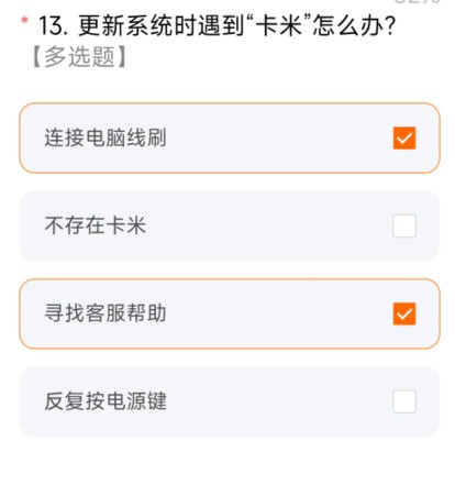13、更新系统时遇到“卡米"怎么办?【多选题】