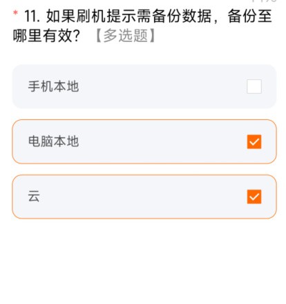 11、如果刷机提示需备份数据,备份至哪里有效?【多选题】