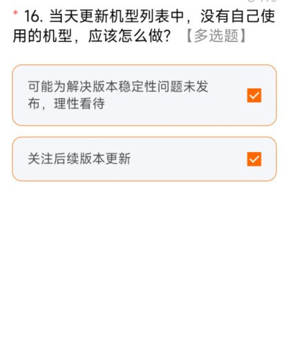 16、当天更新机型列表中,没有自己使用的机型,应该怎么做?【多选题】