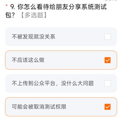 9、你怎么看待给朋友分享系统测试包?【多选题】