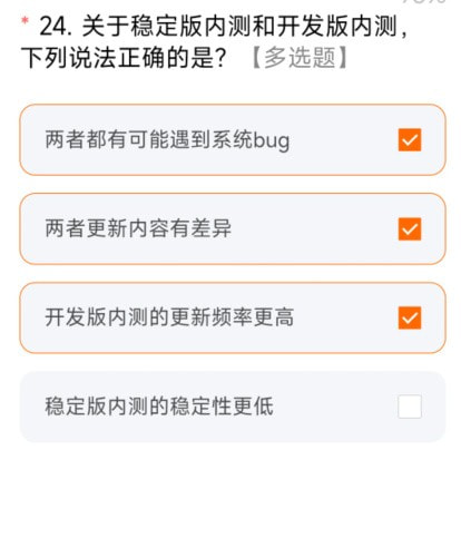 24、关于稳定版内测和开发版内测下列说法正确的是?【多选题】