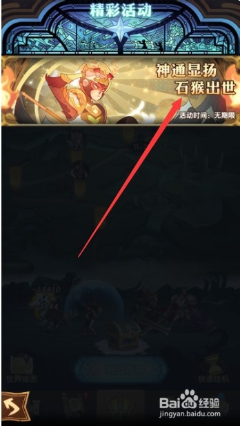 可以看到一个无期限的活动“神通显扬,石猴出世”,点击进入,如图所示。