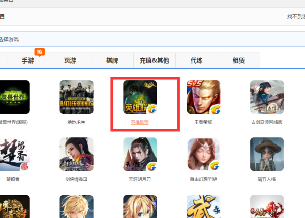 2、点击您想出售的游戏账号,比如英雄联盟。