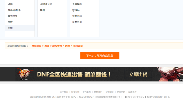5、点击下一步,填写商品信息就可以出售您的账号了。