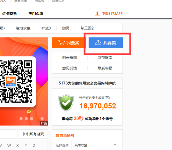 2025-12-21 14:47 来源:西西软件下载 作者:佚名1、进入5173官网,点击我要卖。