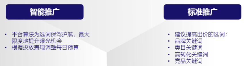 针对智能推广,在同样的预算下,卖家可以选择: