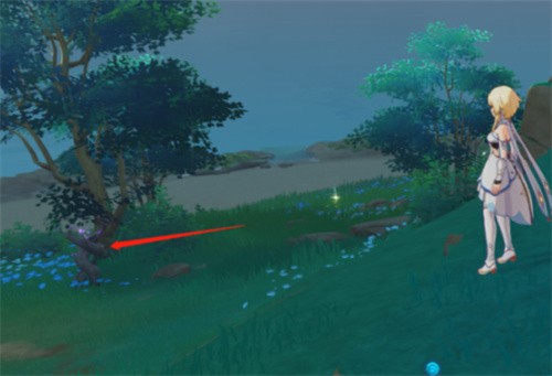 1)、先来到山坡下方找到,雷樱枝条召唤雷种子。
