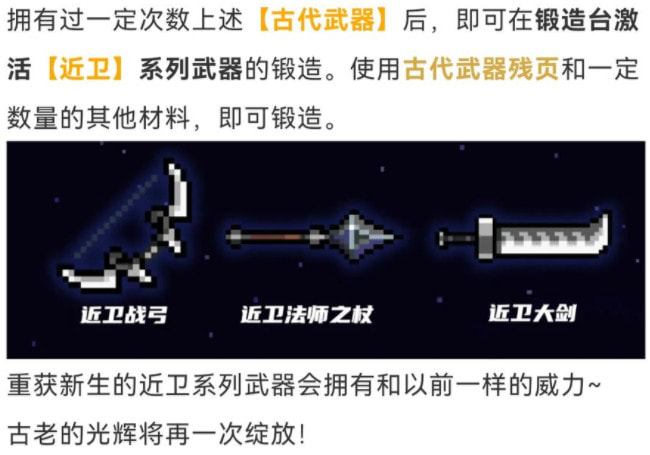3、总而言之,古代武器残页就是打造近卫系列武器的材料。