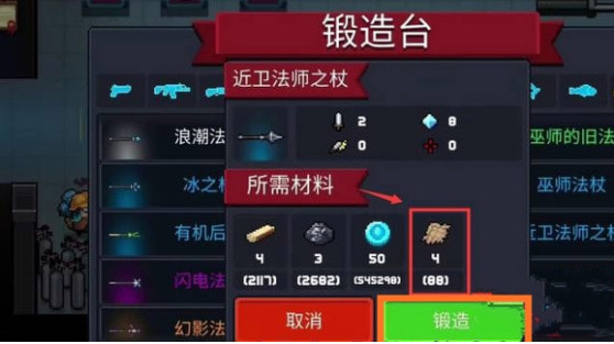 2、然后我们在有一定数量的古代武器残页就可以在锻造台激活近卫系列武器进行锻造了,需要使用古代武器残页以及一些其他的材料。