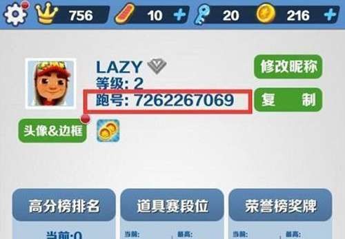 1、最重要的就是你的地铁跑号了,这个号码就是你的游戏ID。