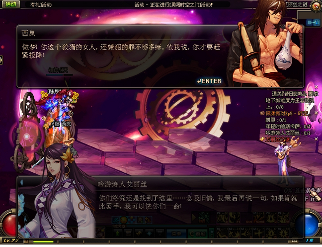 时空之门的迷之觉悟是77级的时候的开的任务,在任务进行时这个NPC是会消失的,用户将主线任务的boss完成后就可以找到了。