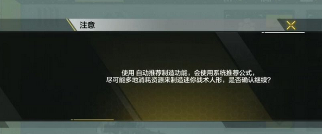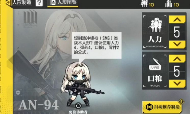 手动输入特定公式,制造特定类型的战术人形。希拉的提示:可以注意一下协助者的气泡文字。