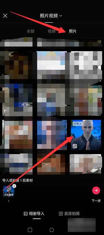 4、第四步:导入自己要加五星红旗的照片,再点击下一步。