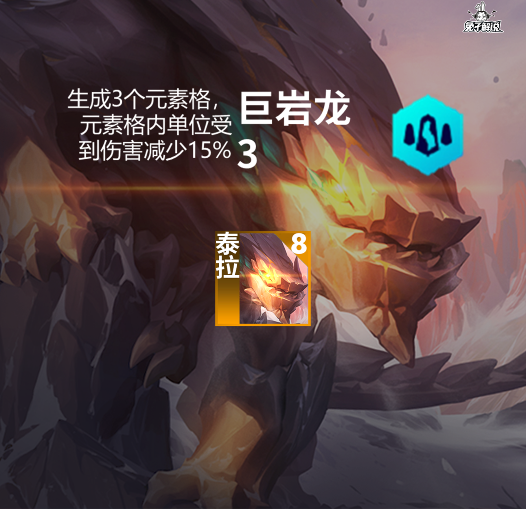 泰拉技能:泰拉踩踏三下,在他们周围造成地震,造成200/250/4000%双抗百分比的物理伤害。在地震结束时,泰拉的鳞片会硬化8 秒,提供200/300/50000双抗。