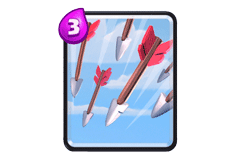 万箭齐发:灵活法术卡:在我们打出超级骑士的组合进攻时,如果敌方使用亡灵大军或者亡灵这类卡牌防守,能够很好的解除!在防守方面也是能够有效的解除公主以及哥布林飞桶等骚扰卡牌,赚费能力很好。