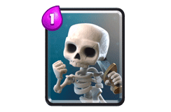 骷髅兵:1费防守卡,小骷髅的拉扯搭配公主塔可以解除对手单一中血量卡牌,并且在我们打出圣水收集器时,如果敌方使用幻影刺客或者野猪骑士等突袭卡牌偷路,小骷髅可以让公主塔受到的伤害降到低。