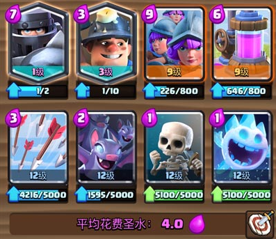 卡组思路:这个卡组在对战中虽然有着超级骑士和三个火枪手两张高费的卡牌,但是卡组的平均费用并不是非常的高(4.0),所以在实战中也是相对灵活的。