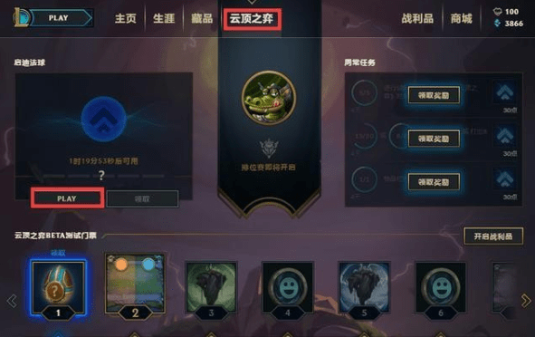 目前云顶之弈已在全服开放试玩,目前1级的信号也可畅玩。点击LOL客户端上方云顶之弈,再点击左侧PLAY,即可进入云顶之弈的游戏模式。