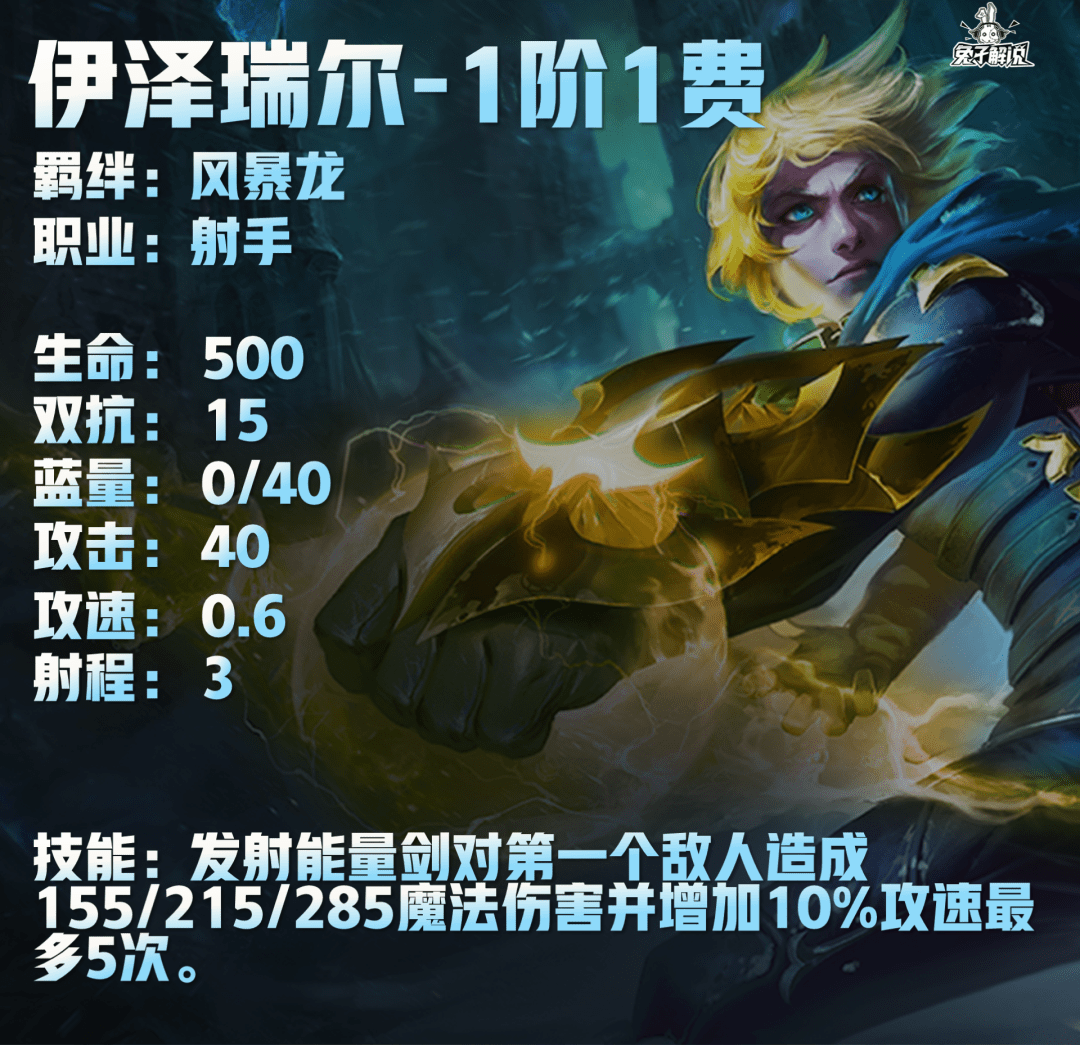 伊泽瑞尔技能:发射能量剑对第一个敌人造成155/215/285魔法伤害并增加10%攻速最多5次。