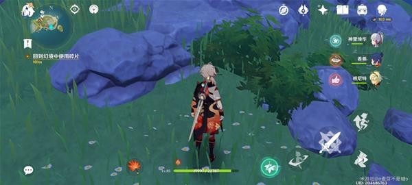 然后这里是碎片的点位,注意这里原本有个丘丘人,被我手快打掉了,调查一下获得碎片,回到水占盘,再次进入秘境