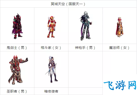 职业:男女枪手、男女鬼剑士、男女格斗家、男女魔法师、圣职者、暗夜使者、守护者、魔枪士