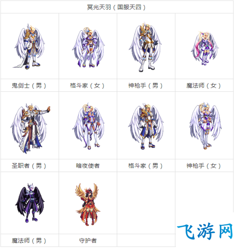 职业:男女枪手、男女鬼剑士、男女格斗家、男女魔法师、圣职者、暗夜使者、守护者