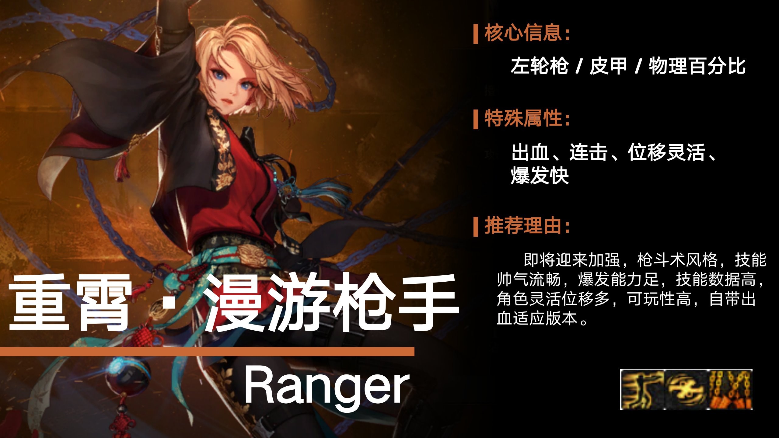 即将迎来加强,枪斗术风格,技能帅气流畅,爆发能力足,技能数据高,角色灵活位移多,可玩性高,自带出血适应版本。