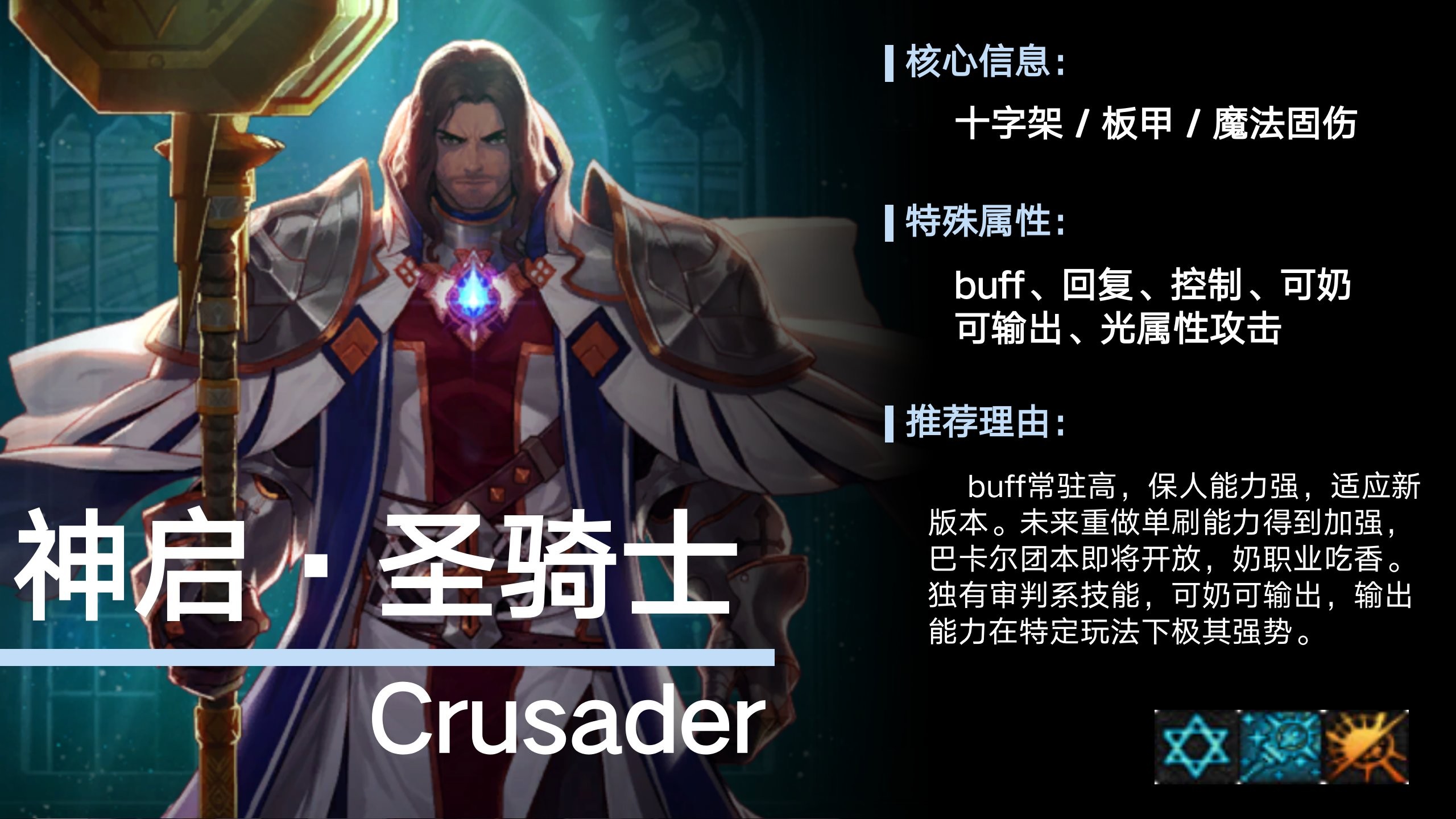 buff常驻高,保人能力强,适应新版本。未来重做单刷能力得到加强巴卡尔团本即将开放,奶职业吃香。独有审判系技能,可奶可输出,输出能力在特定玩法下极其强势。