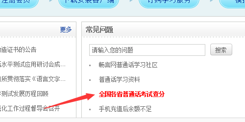 3、进入官网后找到“全国各省普通话考试查分”,点击进入。