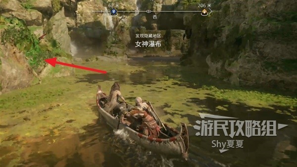 乘船离开,通过刚刚打开的水域,当提示来到女神瀑布后,向左走,进入山洞,这个山洞名为雾纱小径。