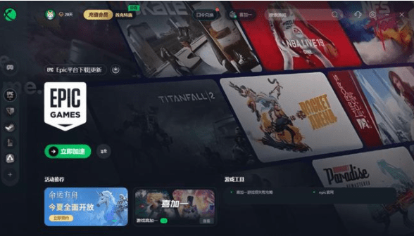 打开Epic客 户端;或者点击加速页面右下角,进入【Epic官 网】。