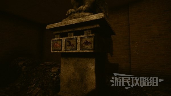 房间尽头有一座雕像,可以看到徽章的正确顺序,记住并离开这个房间。