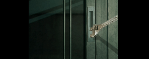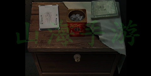 3、回到门外进到深巷中,一个铁网门用获得的钥匙打开,按照图示打开桌子上的机关盒,获得香烟和打火机。