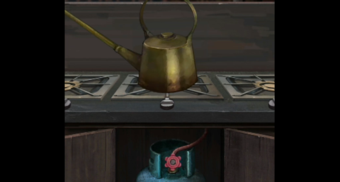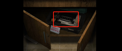 16、在浴室洗手台下面盒子上,按照筷子上显示的方向:上左上下右下,点击四个按钮,打开获得扳手。