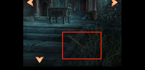 2、使用镰刀,将门口左右两边的石狮子清理干净,然后在右边狮子获得线索,根据门口柱子上的线索,完成左边狮子的机关并获得黑勾玉。