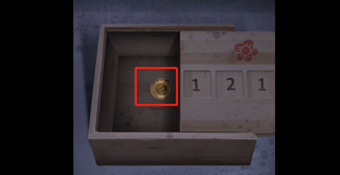 3、点击屋里正前方的桌子,点击盒子上面的机关,让后按照如图顺序排列,获得螺丝刀和铲刀。
