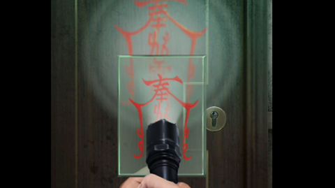 30、最后价格拓印的符咒拿到女友的卧室,使用手电筒将符咒照射在门上,完成通关。