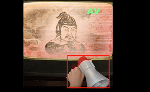 9、前往有电视的屋子中,将玉佩放到机关盒子上,打开获得一张CD,将CD放到电视机中,在使用喇叭录制石将军的声音。