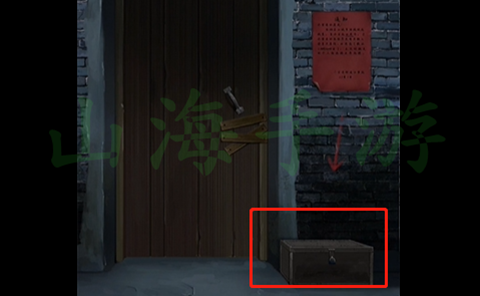 2、点击右前方的木门,来到木门前,点击右下角的箱子,密码是1229,打开之后有一个锤子头,使用木棒合成羊角锤,然后使用羊角锤撬开木门上的木板。