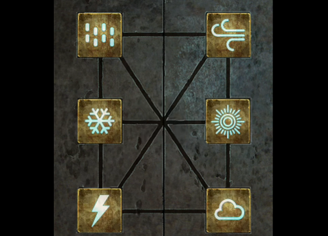 12、进入地下室,根据正殿右边房间中的线索,将地下室墙壁上的机关拼好,获得一把石剑。