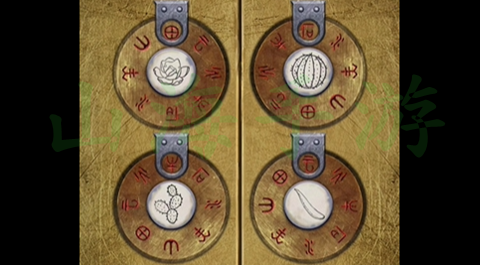 12、然后进入商场,在前台这里按照图示顺序放置四个印章,获得玉扣。