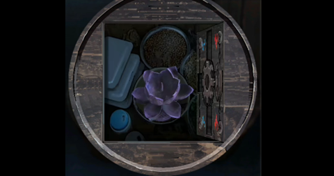 27、回到阳台点击杂物房右上角的灯,照在地下的方向顺序,就是茶水间柜子机关盒的按钮顺序,打开获得一个镜头。